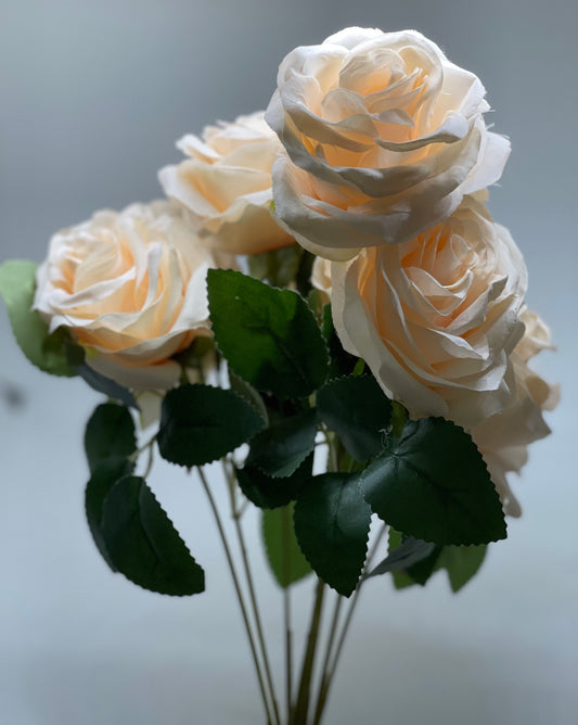 Adele Real Touch 5 Heads Bouquet Roses Light Fawn